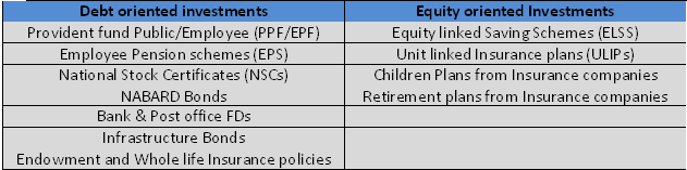 Now investment in options under various heads depends on two parameters time period of investment and returns on investment. In last 5 years, returns of equity oriented investments are in range of 20-25% per annum which is tax free and without taking in account the savings on taxes. This return is higher than any fixed deposits and debt instruments available in market. Since it is market linked, if we reduce the return calculations for last three years only then it is in range of 10-15% per annum. The surety on returns of these instruments is lesser so they are considered to be riskier. Since the investment time frame is 3-5 years almost 60% of investments should be in these instruments. On basis of time horizon if we see ELSS have a smaller lock in period of 3 years only and can be redeemed as per requirement, while Insurance plans have a longer maturity period of more than 10 years in general and redemption before that period result in lower returns. Therefore the priority list should be