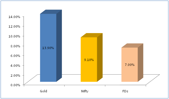 As the risk taking abilities and knowledge about financial instruments and stocks is increasing among investors they increasingly started investing in them. But still the preference to buy gold as investment option has not changed and should not change. If we consider the returns of different investment options in general individuals have are the shares for equity oriented instruments and Bank deposits for fixed return instruments.