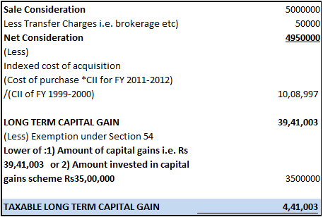 Hence, by utilizing the benefit of Section 54 Mr. Shiriish will pay LTCG tax @ 20% on Rs 4,41,003 which will amount to Rs 88,201 only.