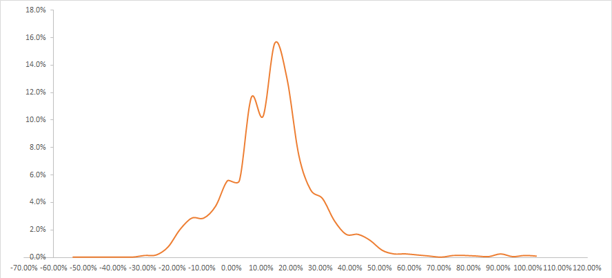 Secondly, The returns of equity are non-linear over a year you can get returns of +100% and money doubles as well as it can decline by 50% and cut to half. there are various possibilities of returns in between. The chart below shows the probability distribution of the same based on last 20 years of return distribution. If you can deposit the money in Fixed deposits @7% there is a 30% probability that equity returns might be lower than that.