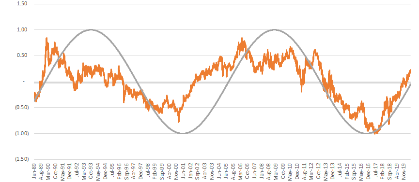 To identify the gold cycle, I took the difference of 5 year return of gold vs 10 year return of gold to get the trend. The below chart can show you the peak & trough of the gold cycle. As usual the future returns are unpredictable but if you are towards the far bottom and the trend of returns change towards up, it is a good sign of +ve momentum for returns in gold. vice versa the reverse is also true. The main assumption in such methodology is that we will revert to mean over a long term.